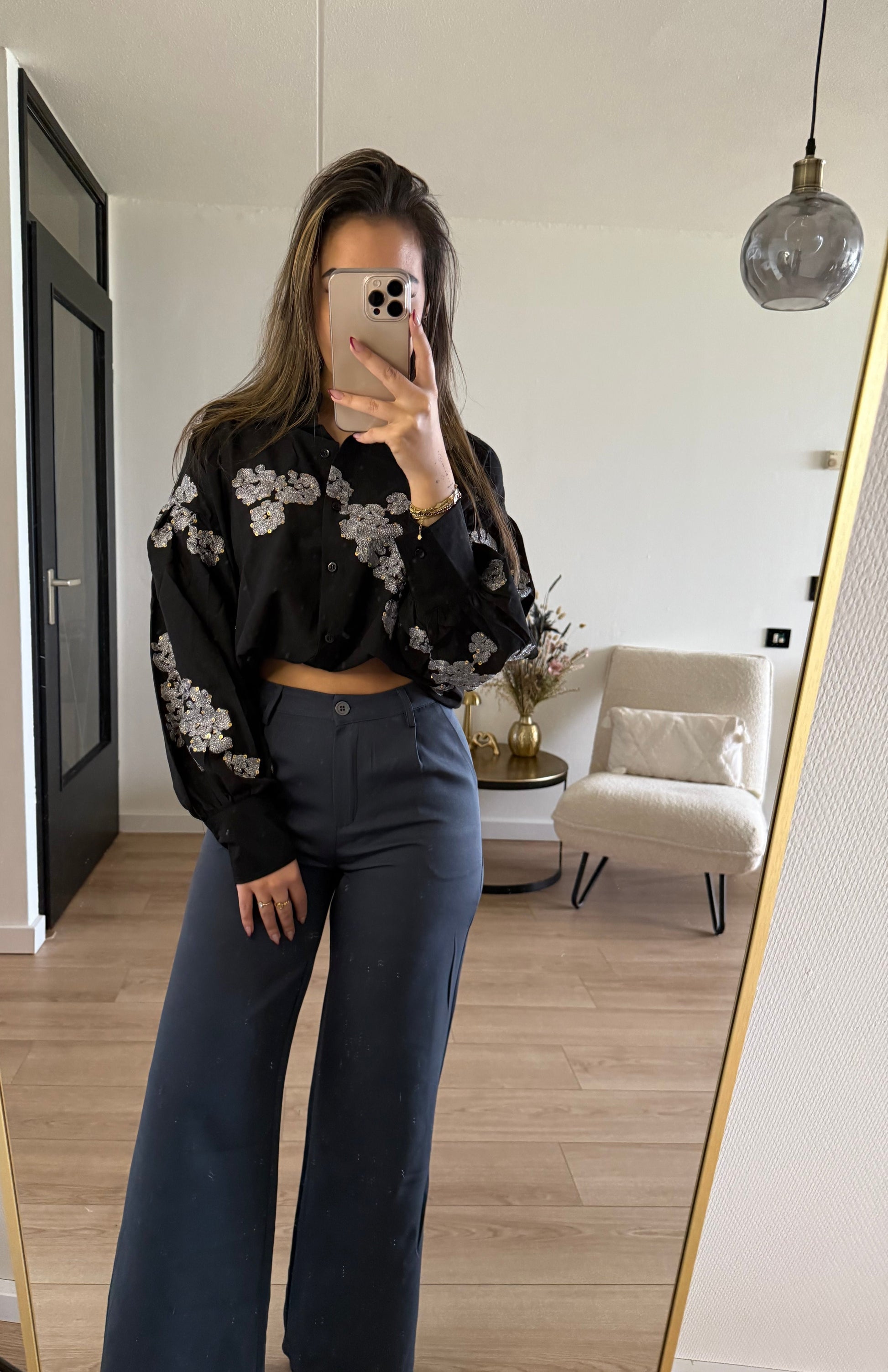 De Isa blouse is een prachtige blouse met zilveren borduursels en pailletten, fantastisch voor de feestdagen. Of wanneer je gewoon wilt stralen. De Isa blouse is één maat en te dragen tot een XL.